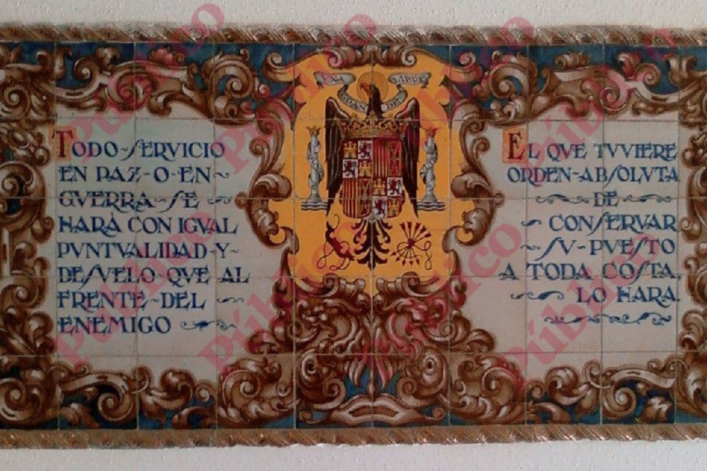 Placa con ‘enseñanzas’ de Franco situada en el Regimiento de Artillería Antiaérea Nº73. — Público
